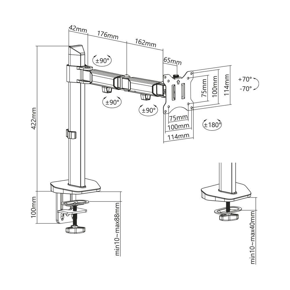 ACT Monitorarm office, 1 scherm, zilver