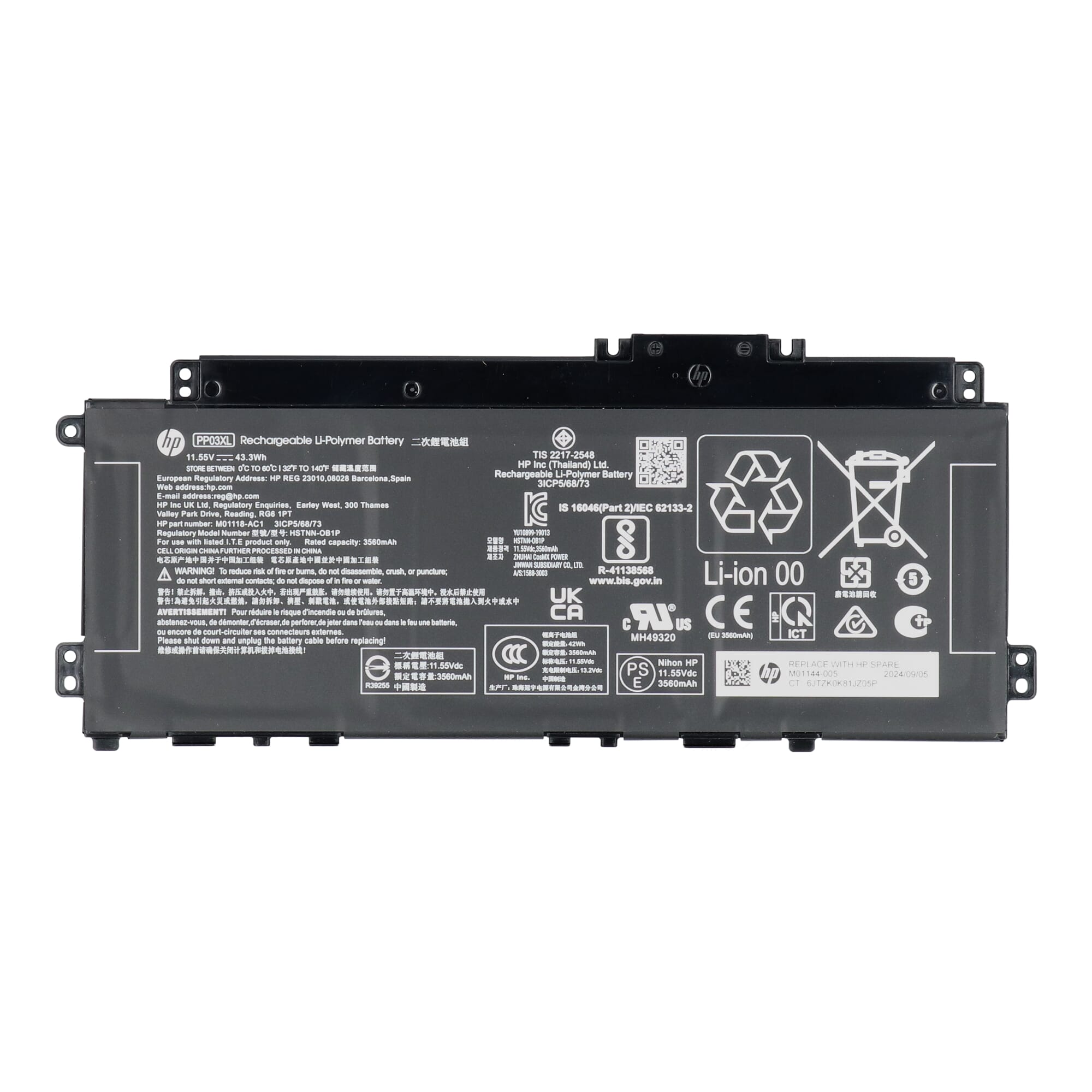 Dezelfde specificaties- Deze accu heeft een accucapaciteit van 3560.00 mAh